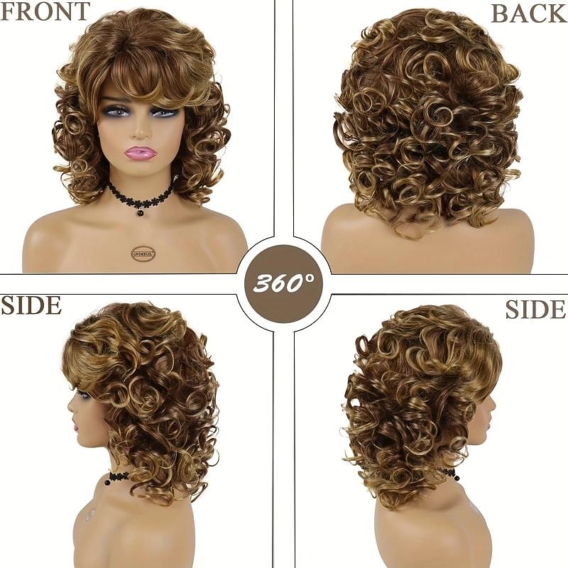 Heat Resistant Synthetic Bob Wig with Bangs - Medium Long Curly Cut for Beginners 12