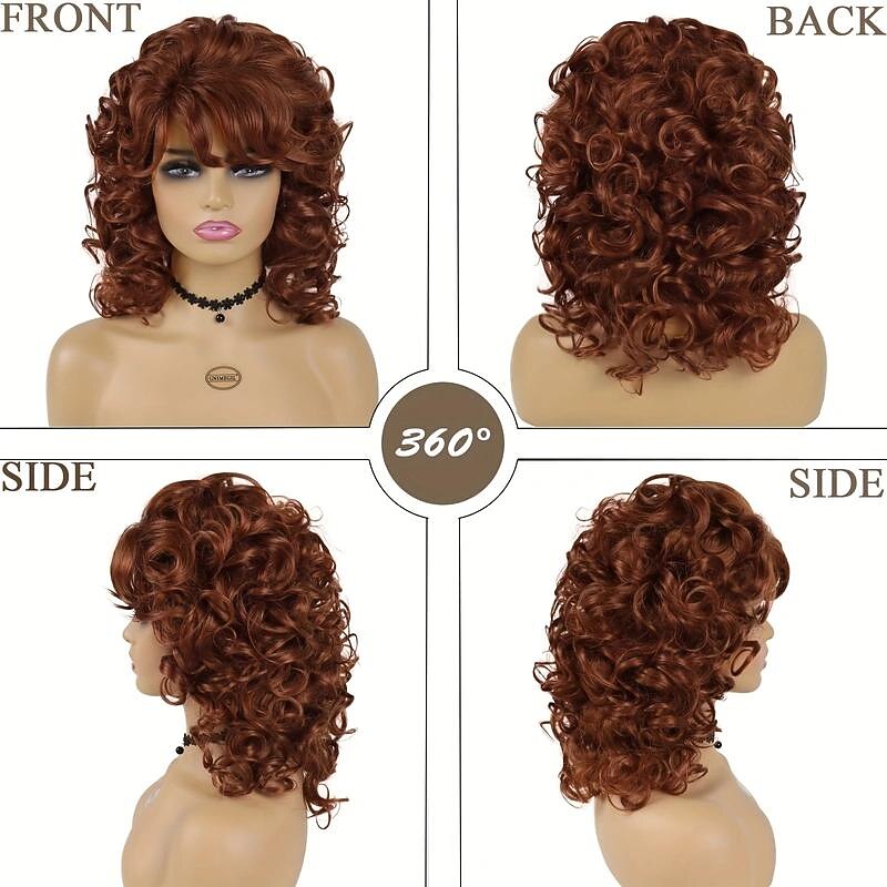 Heat Resistant Synthetic Bob Wig with Bangs - Medium Long Curly Cut for Beginners 17