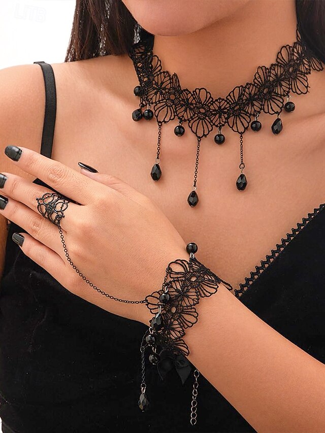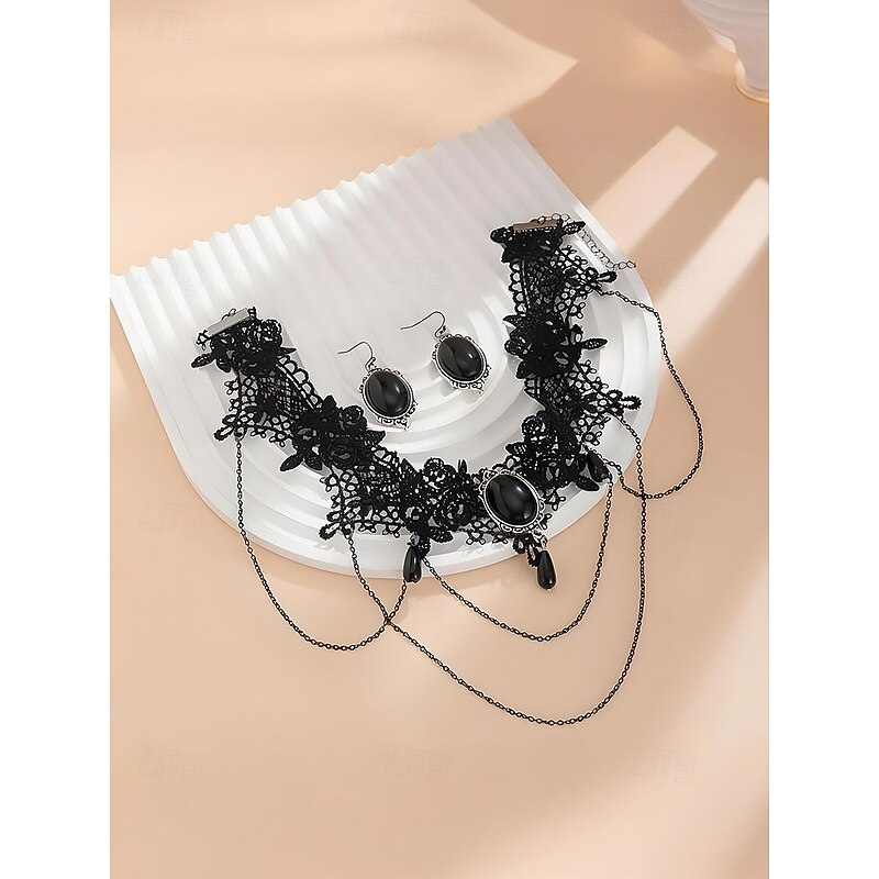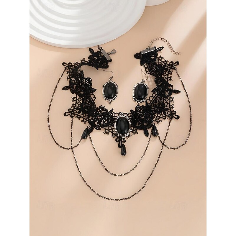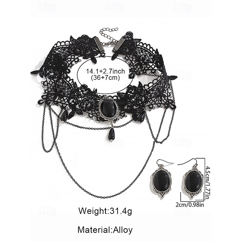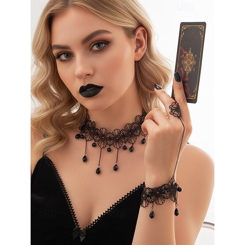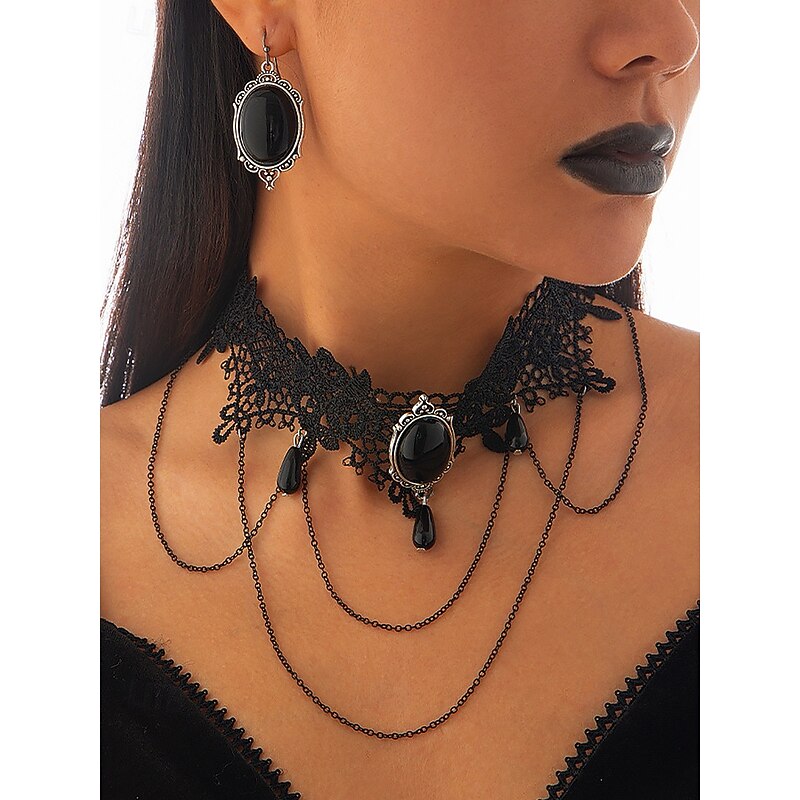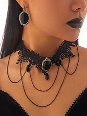 $11.99 - Women's Halloween Gothic Lace Choker Necklace and Earrings Set – Vintage Black Jewelry with Chains for Costume Party and Cosplay 2025. Shop for cheap Halloween Accessories online? Buy at lightinthebox.com on sale today!