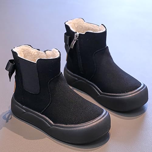 IWIHMIV Toddler Girls Ankle Boots Winter Leather Thickened Warm Cotton Boots Non Slip Side Zipper Dress Boots 7