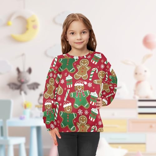 JUNZAN Gingerbread Men Christmas Green Red Little Girls Pullover Hoodie Long Sleeve Outerwear for Kids Camping 4T 5