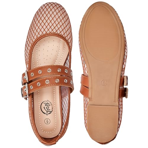 Trary Ballet Flats for Women,Mesh Mary Jane Shoes,Double Buckle Strap Spring Summer Shoes Comfortable Dressy 6