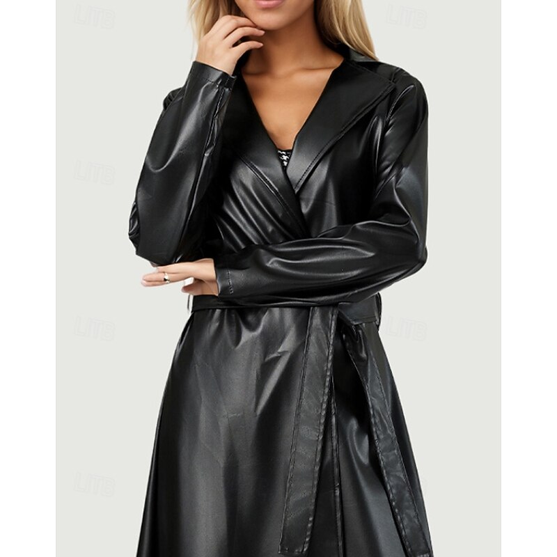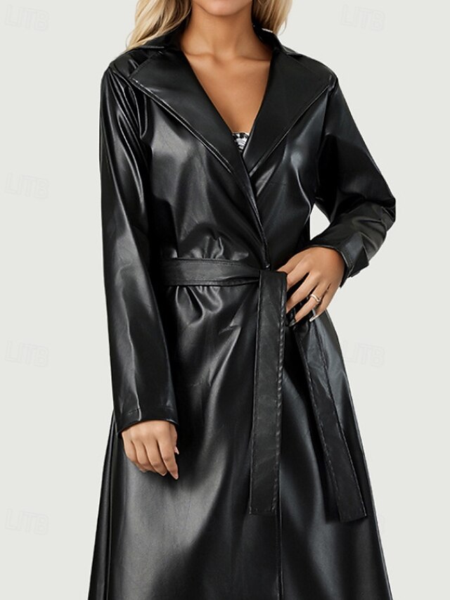 More information about Women's Trench Coat Warm Comfortable Pocket Active Fashion Plain Going out Weekend Open Front Long Turndown Regular Fit Long Sleeve Outerwear Black Fall Winter