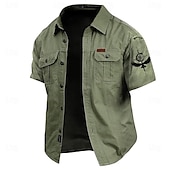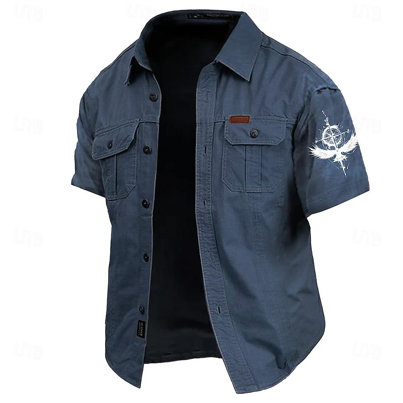 More information about Men's Nautical Eagle Compass Work Shirt Western Shirt Cargo Shirt Short Sleeve Casual Tactical Sports & Outdoor Going out Summer Spring Turndown Print Army Green Khaki Dark Blue