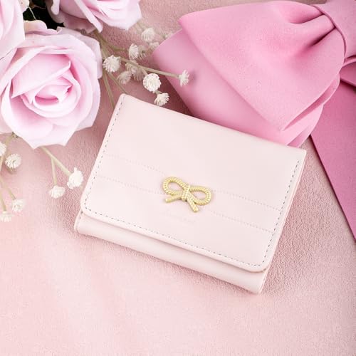 • Stylish Design: Our bow small wallet is romantic and sweet in color and is embellished with an exquisite golden bowknot, adding a girlish dreamy and romantic style to your accessory.