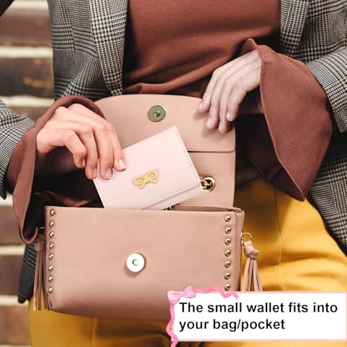 Pink Bow Wallet, Cute Wallet Bow Small Wallet Coquette Bow Wallet sleek Bow Card Holder Wallet Leather Girls Wallet with ID Window for Women Girls