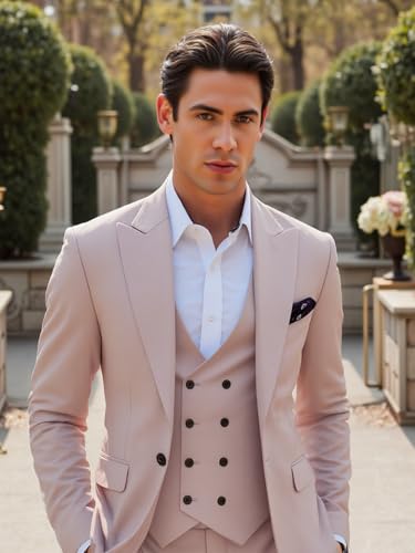 Men's 3 Piece Suit Classic Fit Dress Suits Wedding Business Tuxedo Jacket Blazer & Pants for Dinner Prom 6