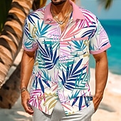 More information about Men's Colorful Palm Leaf Tropical Plants Summer Hawaiian Shirt Button Up Shirt Short Sleeve Hawaiian Resort Vacation Holiday Beach Wear Summer Spring Turndown Collared Shirts Front One Pocket Pink