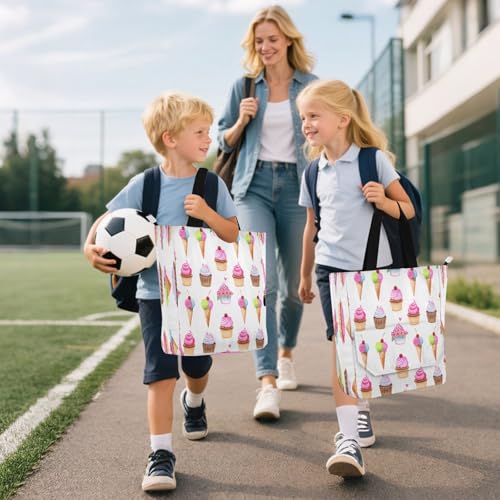 Watercolor Ice Cream Book Tote Bag,Large Capacity Handbag with Zipper Perfect for School,Travel,Shopping 1