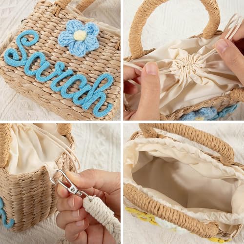 Personalized Crossbody Straw Bag Toddler Girl Flower Play Purse Custom Name Little Girl Beach Hand Bags Embroidered Baby Girls Purses with Customized Name Gift Basket Kids Tote Bag Birthday Gifts 7