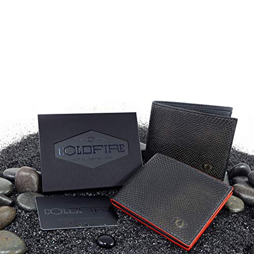 HOT ! ColdFire Snake Eye Slim Leather Wallet - 6 Card Slots - Red - RFID Blocking - Bifold Multi Compartment Design - Snakeskin Pattern - Limited Edition (Red Edges)