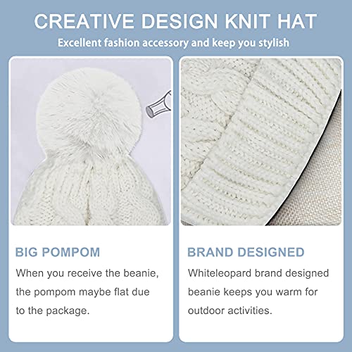Whiteleopard Kid Beanie Hats Lining Pom Pom for Children -Slouchy Cable Knit Toddler Skull Hat Baby Ski Cap for Girls Boys