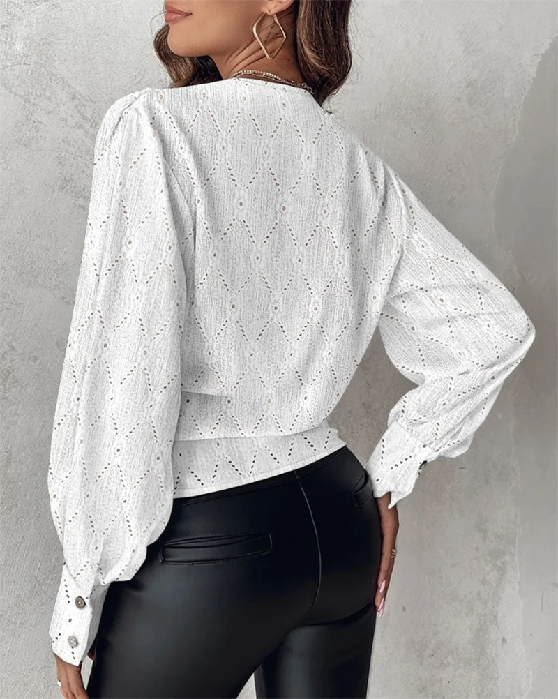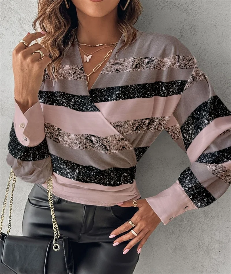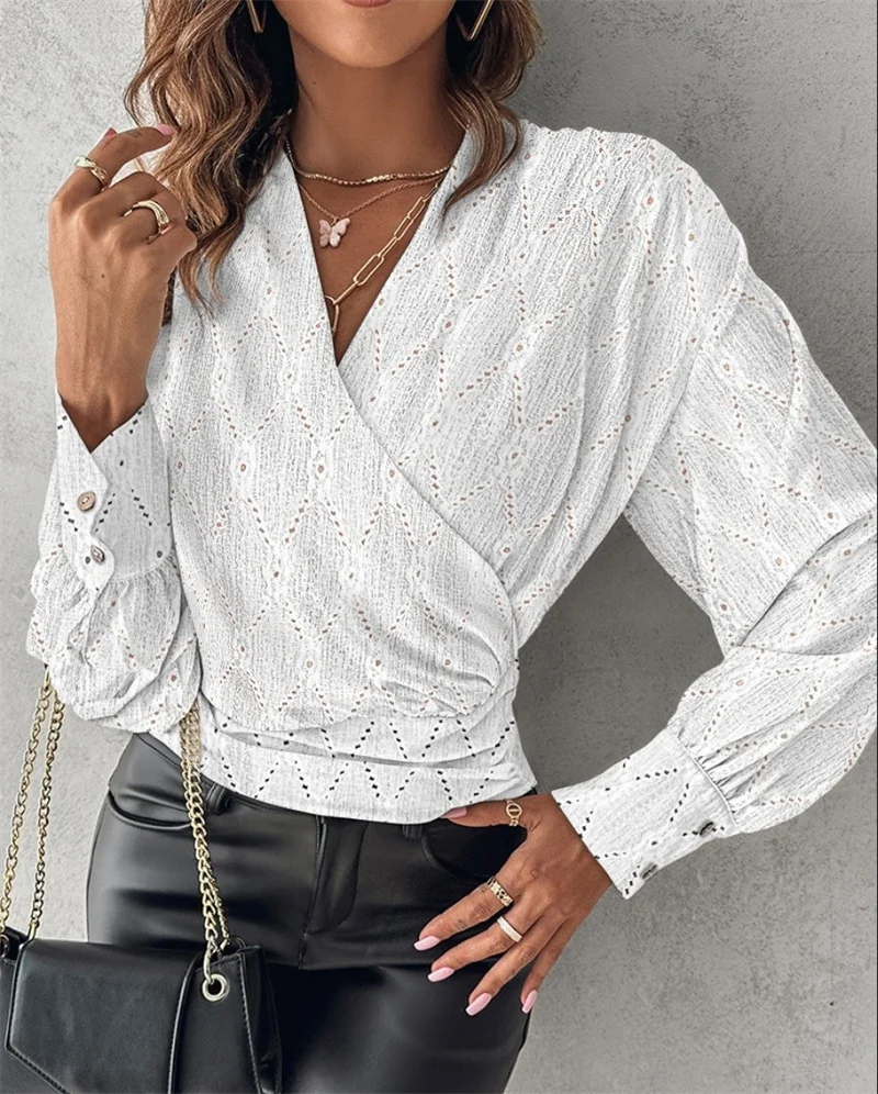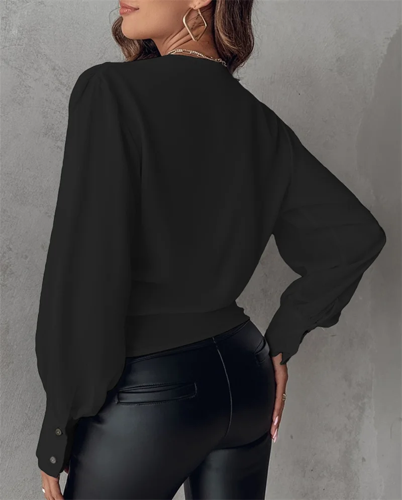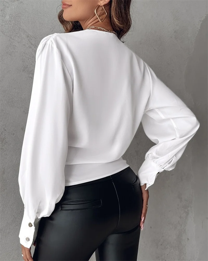 Sexy V Neck Long Sleeve Summer Fashion Elegant Blouse. S-2X