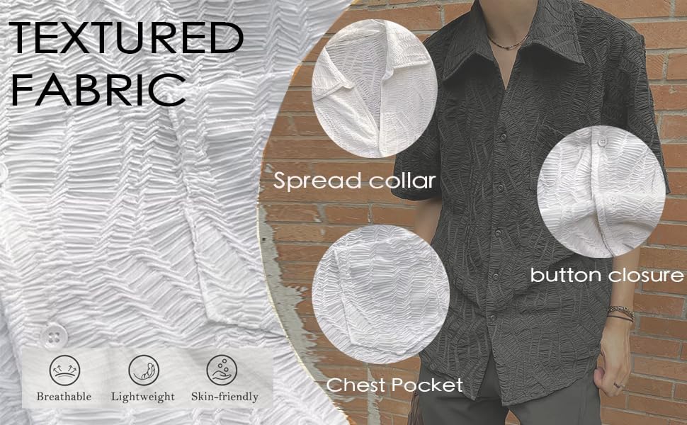 • CLASSIC FIT - This mens casual jacquard shirts is featured with button-down closure, short sleeve, camp collar, regular fit。The simple and classic solid color design makes it never be out of fashion.
