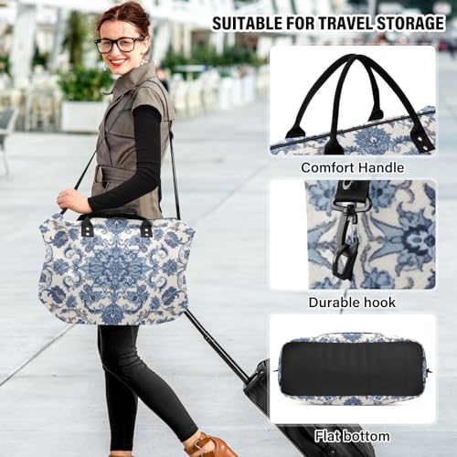 HOT ! Kigai Bohemian Floral Blue Duffle Bag Versatile Travel Duffel for Men and Women, Carry On for Weekend or Overnight Stay