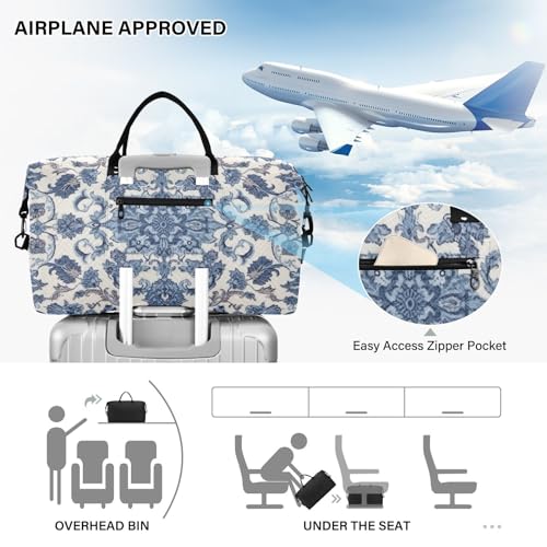 Kigai Bohemian Floral Blue Duffle Bag Versatile Travel Duffel for Men and Women, Carry On for Weekend or Overnight Stay 6