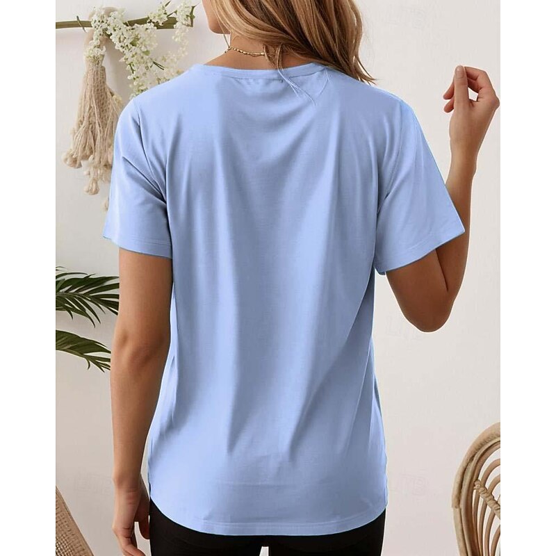 Women's T Shirt Stylish Casual Print Short Sleeve Regular Tops Crew Neck Daily White Pink Purple Light Blue Summer 8