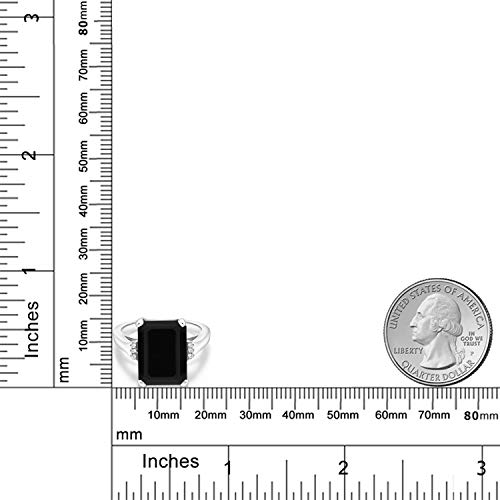 Gem Stone King 6.67 Cttw Black Onyx Engagement Ring For Women | 925 Sterling Silver | Emerald Cut 14X10MM | Gemstone Birthstone | Available in size 5, 6, 7, 8, 9 6