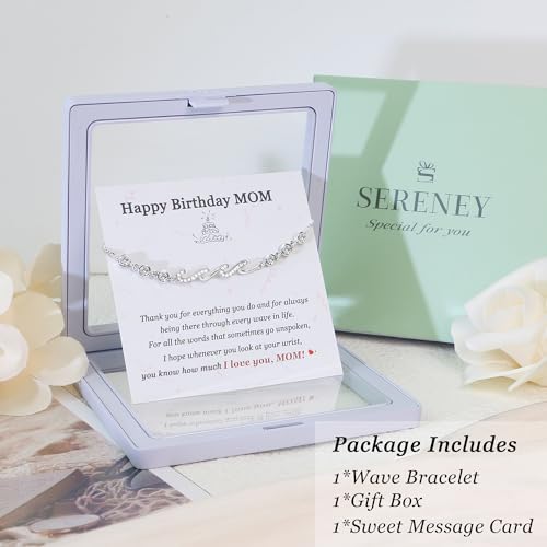 • Gifts for mom birthday unique: The mom bracelet is more than just a birthday gift for mom—it’s a symbol of love and appreciation. The wave design represents the endless love and strength of a mother, while the zircon stones reflect the sparkle she brings to your life. Packaged in a birthday gift box with a birthday card for mom. Whether for a birthday, Mother’s Day, Valentines Day, or just because, this wave bracelet is a timeless and meaningful keepsake she’ll treasure forever