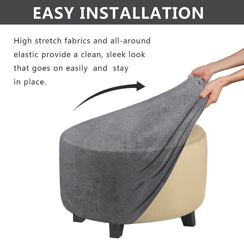 sought-after ! Round Velvet Ottoman Cover Folding Storage Stool Furniture Protector plush Slipcover with Elastic Bottom Ottoman Cover