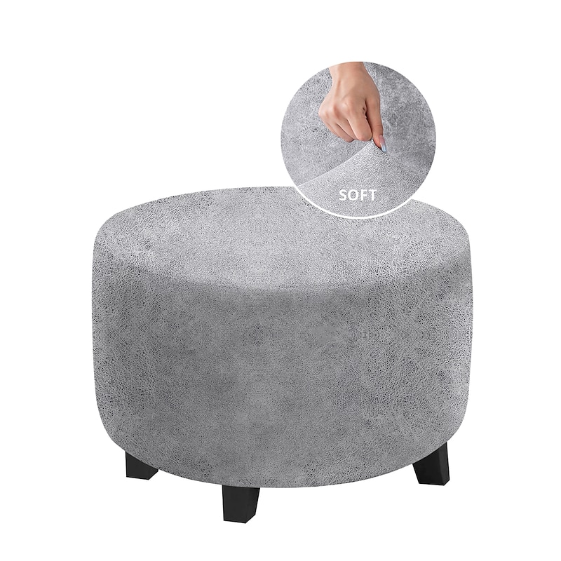 Round Velvet Ottoman Cover Folding Storage Stool Furniture Protector Soft Slipcover with Elastic Bottom Ottoman Cover 3