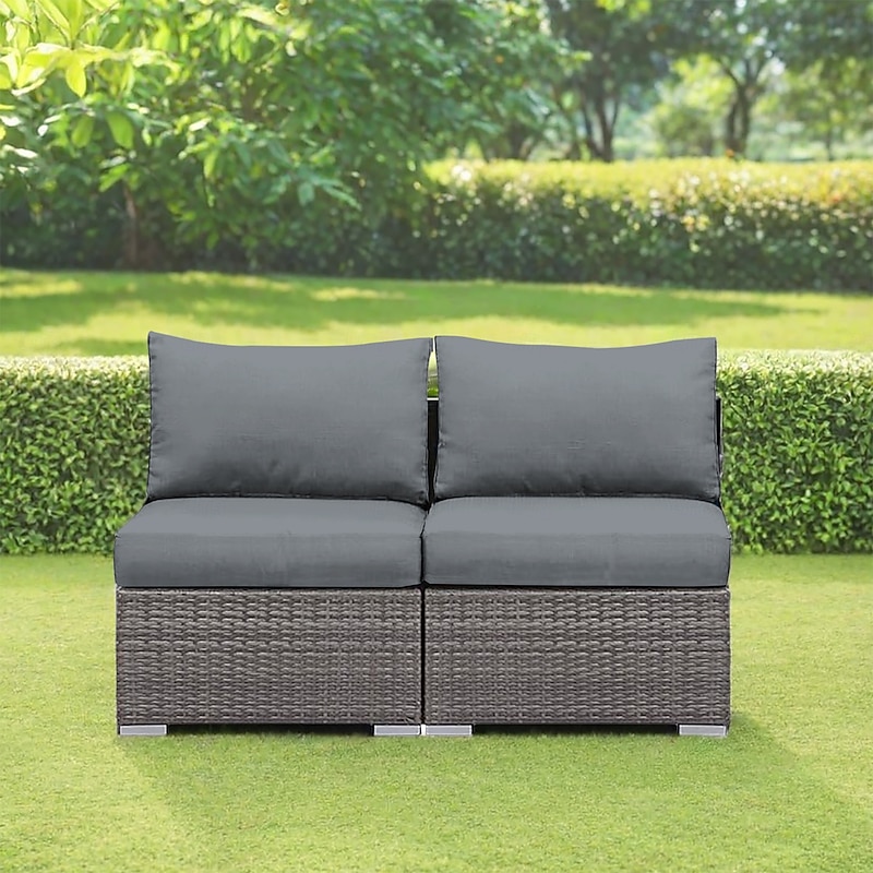 2-Piece Patio Armless Sofa Cover Set, Outdoor Sectional Sofa, All-Weather Grey PE Wicker Rattan Conversation Sofa, Outdoor Loveseat, Patio Seating for Balcony Garden Pool 2