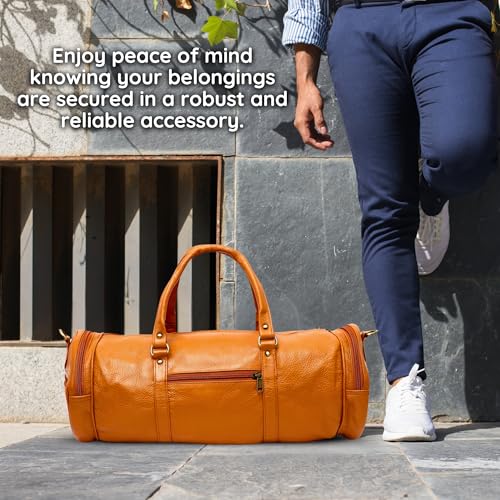 Men's Leather Duffel Travel Gym Sports Overnight Weekend Leather Bag (Light orange)