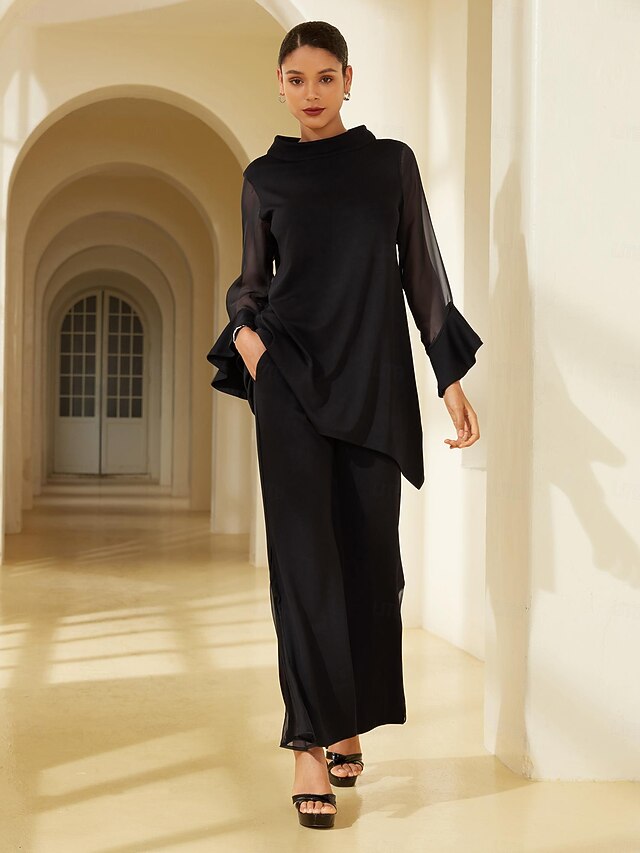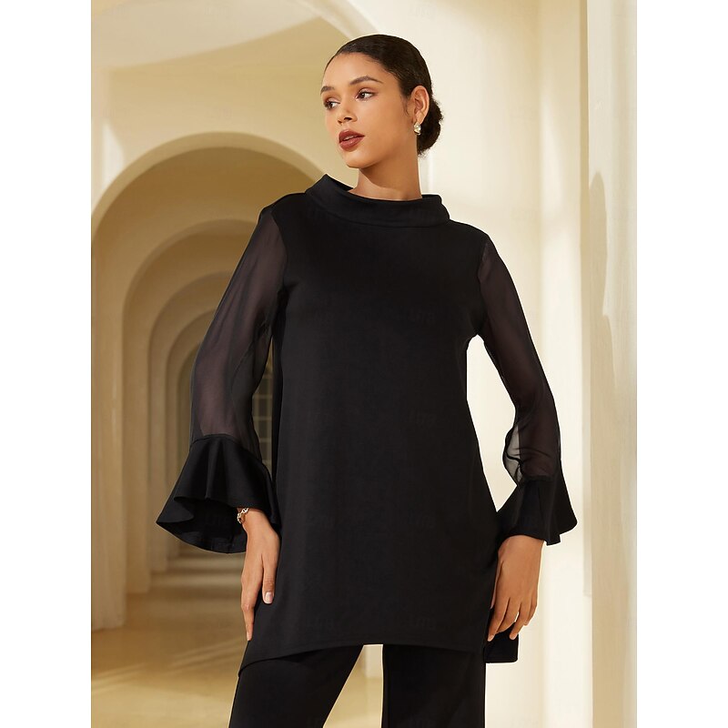 $156.99 - Women's Modal Chiffon Flare Cuff High Neck Long Sleeve Blouse Pants Set Date Elegant Daily Wear 2025. Shop for cheap Two Piece Sets online? Buy at lightinthebox.com on sale today!