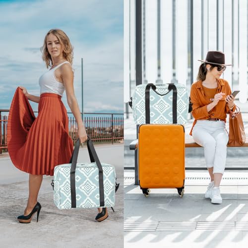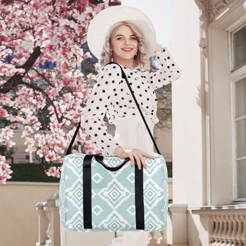 HOT ! Light Blue Rhombus Travel Duffel Bag for Men Women Argyle Print Sports Gym Bag Waterproof Weekender Overnight Bags Foldable Carry on Backpack for Swim Yoga Fitness Workout