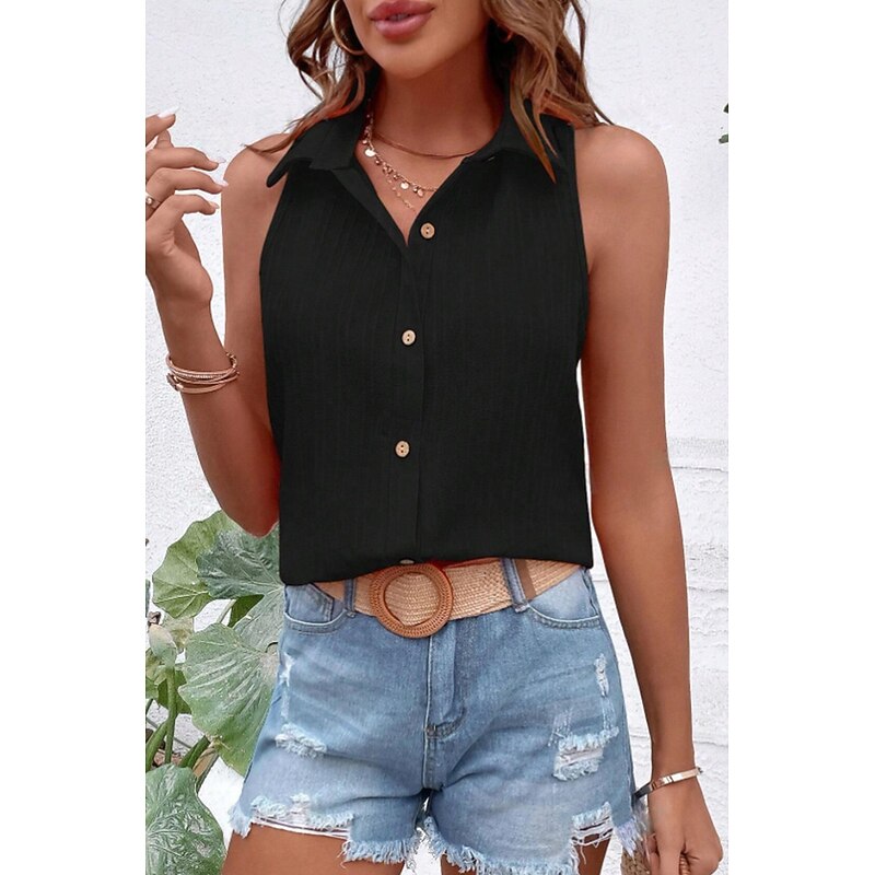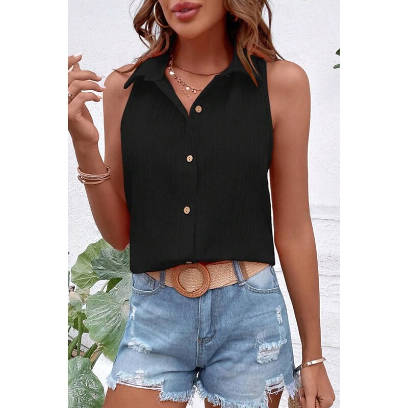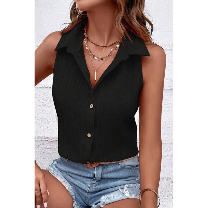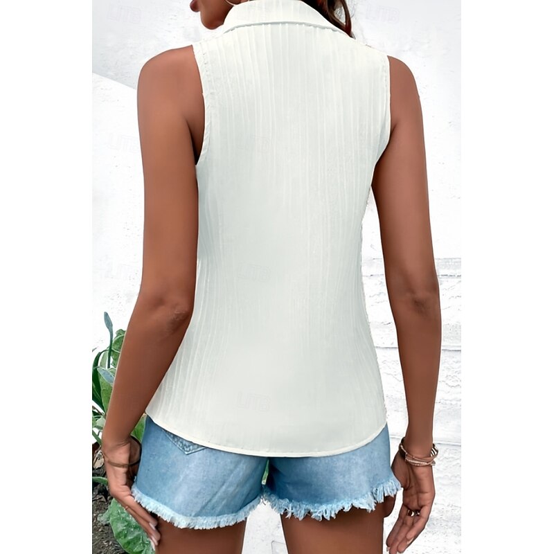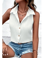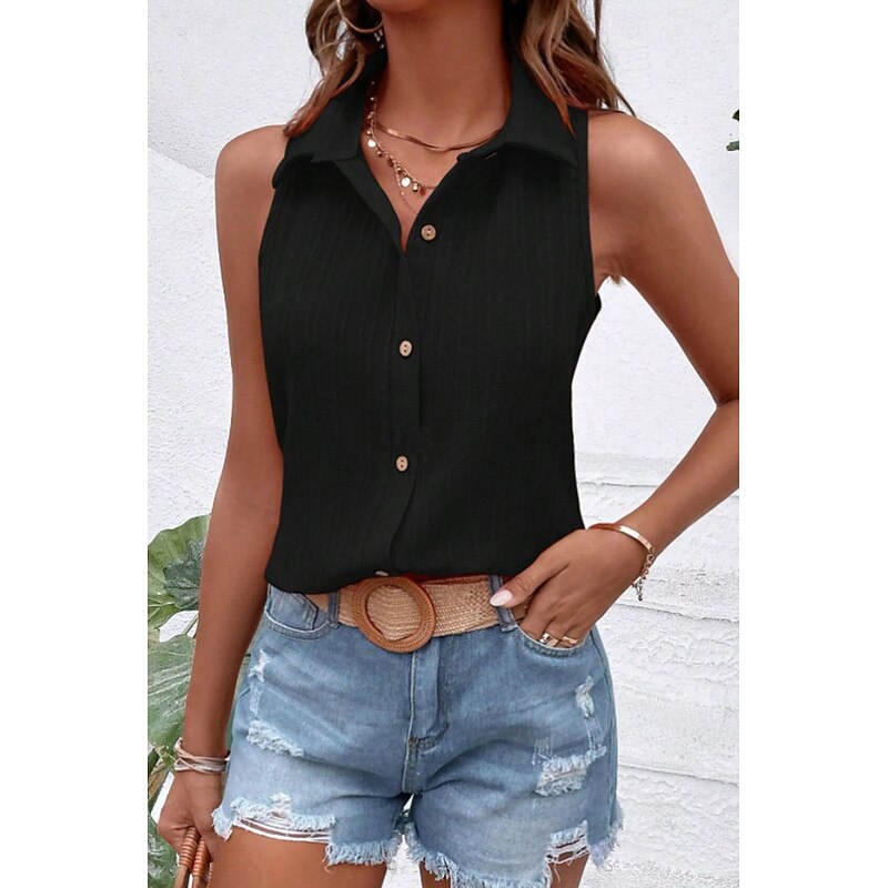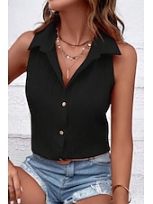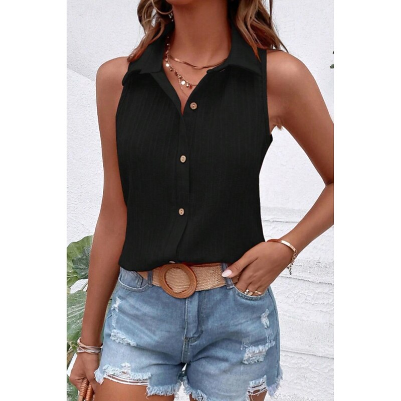 More information about Women's Shirt Blouse Plain Modern Sleeveless Shirt Collar Regular Tops Holiday Going out Buttons Black White Summer
