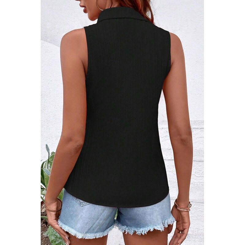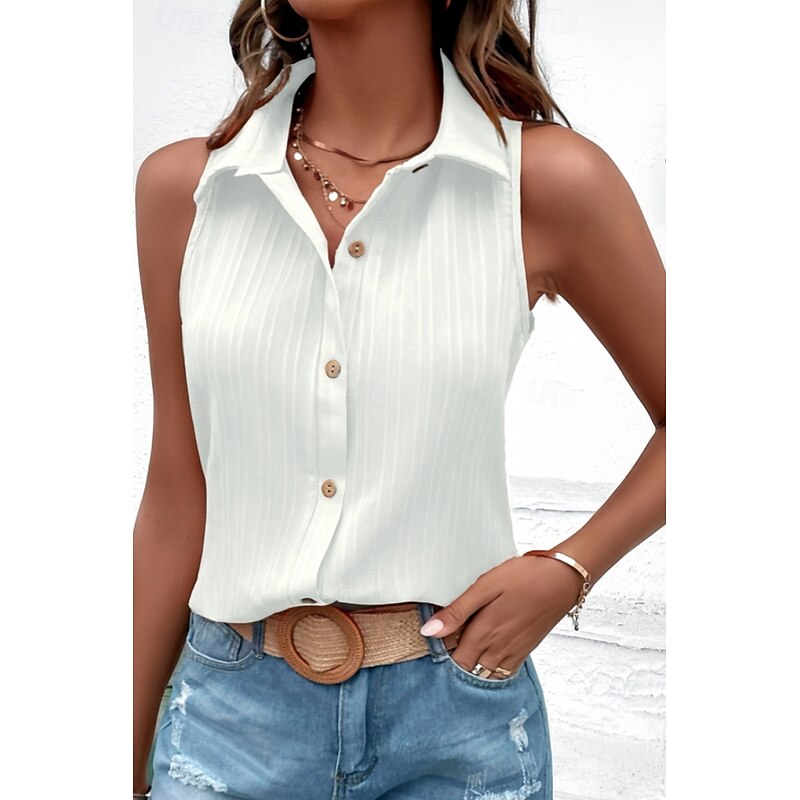 Women's Shirt Blouse Plain Modern Sleeveless Shirt Collar Regular Tops Holiday Going out Buttons Black White Summer 10