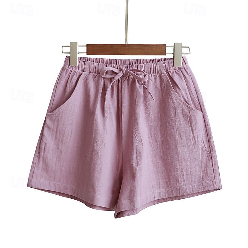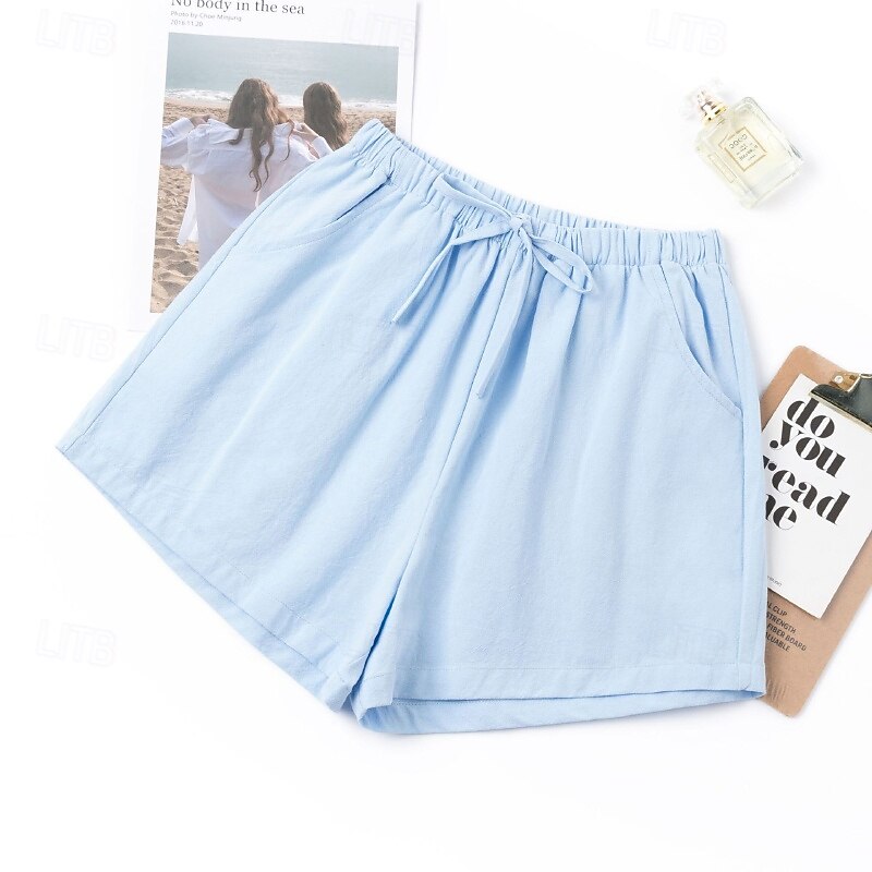 More information about Women's Cotton Linen Shorts Shorts Slacks Streetwear Casual Short Natural Plain Pocket Elastic Drawstring Design Comfy Comfortable Vacation Street carmine Forest Green Light Sky Blue Grey Summer