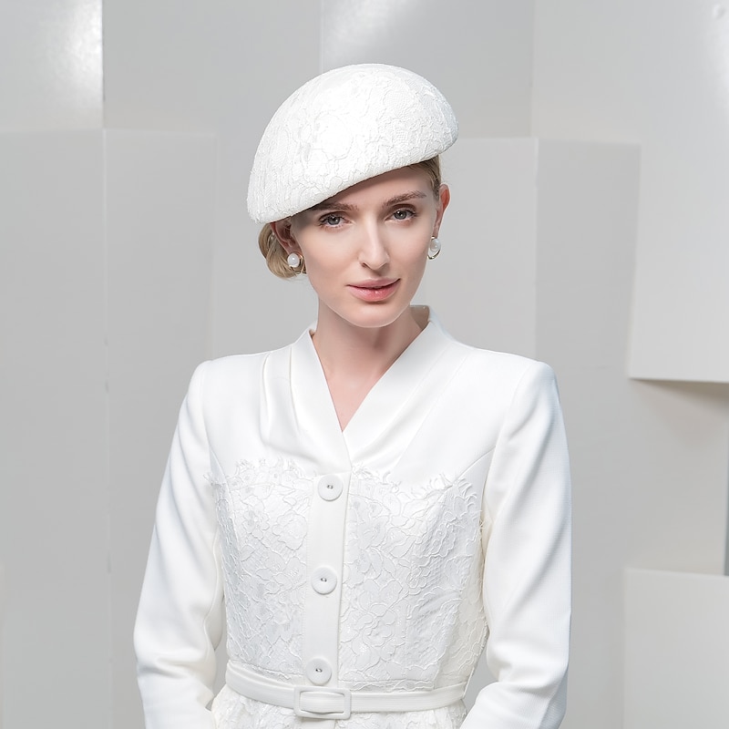 Hats Polyester Beret Hat Wedding Casual With Lace Headpiece Headwear 1