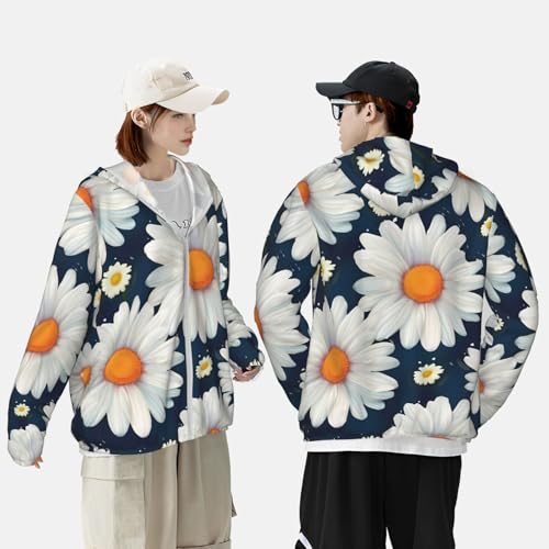 Sun Protection Hoodie Shirt Daisy pattern UPF 50+ Long Sleeve Outdoor Rash Guard for Men Women 4