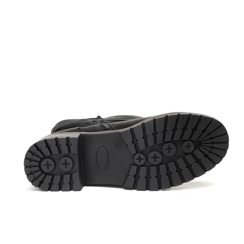 • Design: Modeled after biker boots, these fall fashion boots have gold buckles and belts, set on TPR soles with low heels and a cushioned footbed.