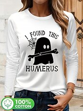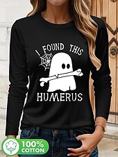 More information about Halloween Women's Blouse Graphic Letter Vintage Stylish Classic Long Sleeve Crew Neck Regular Tops Daily Going out Print Black White Spring Fall