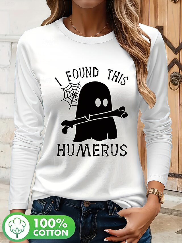 HOT ! Halloween Women's Blouse Graphic Letter Vintage Stylish Classic Long Sleeve Crew Neck Regular Tops Daily Going out Print Black White Spring Fall