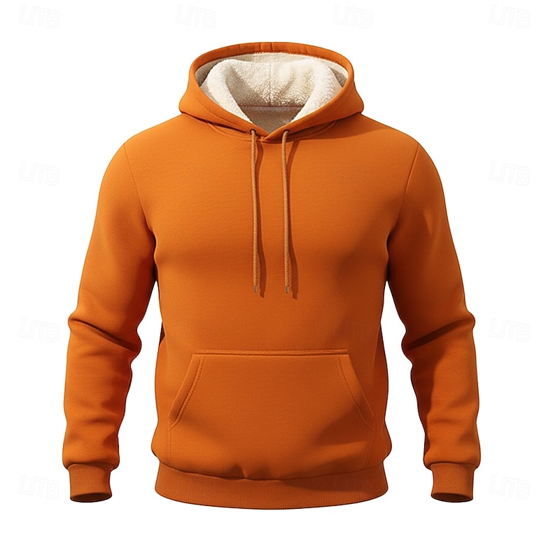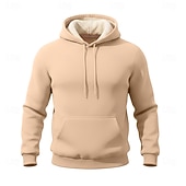 More information about Men's Hoodie Sherpa Pullover Hoodie Sweatshirt Black Pink Yellow Khaki Orange Hooded Solid Color Print Sports & Outdoor Sports Streetwear Fleece Basic Cool Casual Fall Spring Clothing Apparel Hoodies