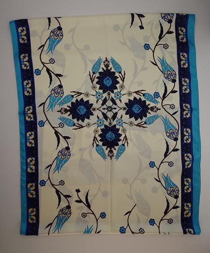 MutluHan Turkish Scarf - 100% Silk Tulip Design | Navy Blue Turquoise | Luxurious and snug Women’s Scarf, impeccable for Gifts and Special Occasions, Suitable for Daily, Evening and Office Wear