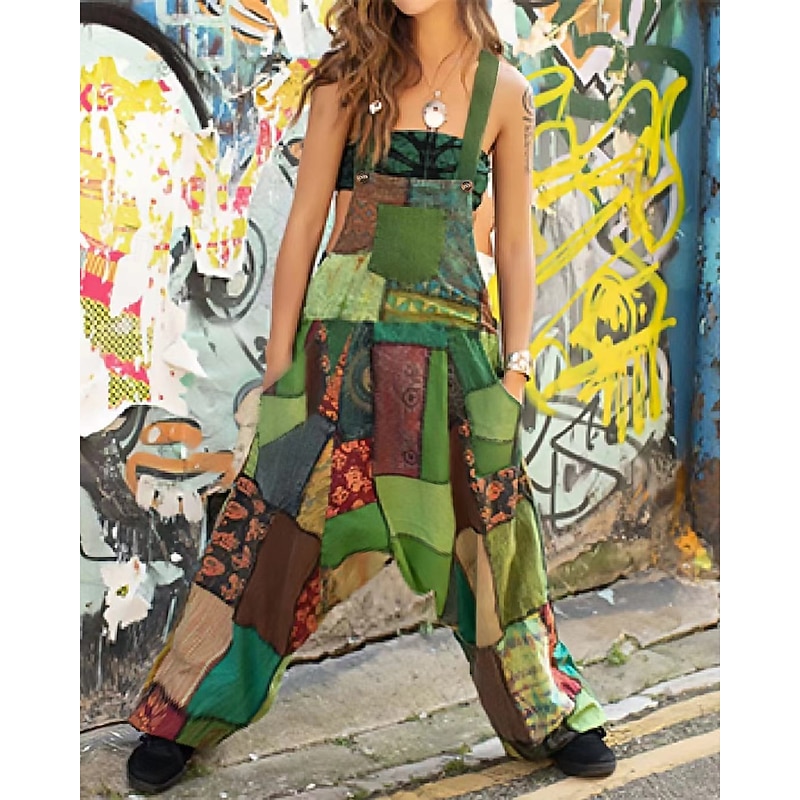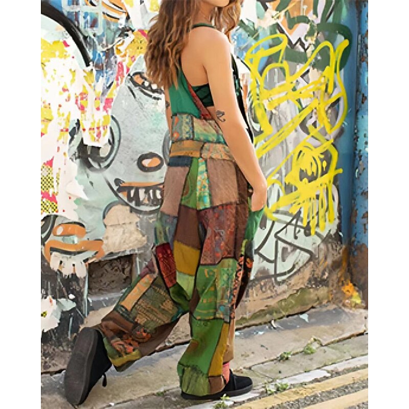 Women's Normal Jumpsuit Casual Floral Sleeveless U Neck Pocket Print Street Daily Regular Fit Light Green Orange Green Summer 4