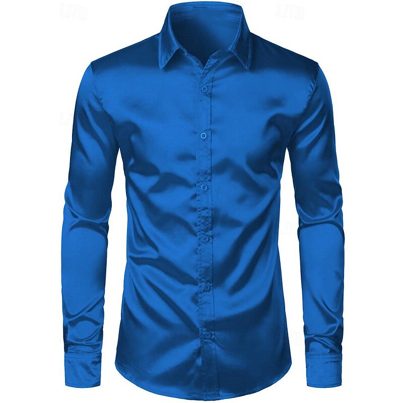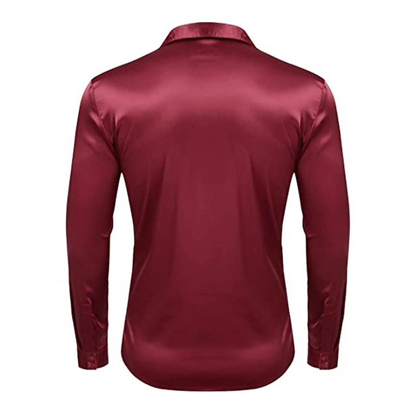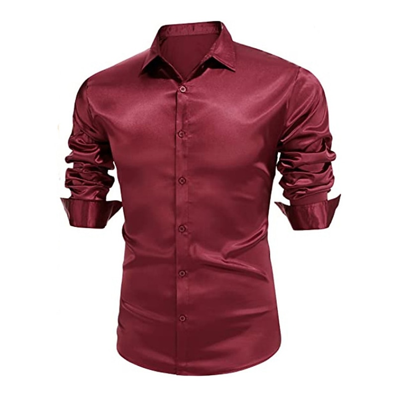 More information about Men's Shirt Satin Shirt Casual Shirt Button Up Shirt Plain Wedding Vacation Black White Wine Blue Long Sleeve Lapel Spring & Summer Clothing Apparel