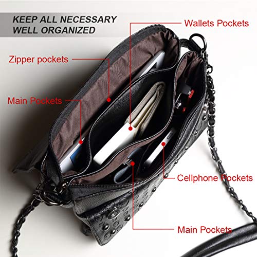 Freie Liebe Women Classic Black Skull Cross Body Bag Vintage Clutch Purse Shoulder Bag 4