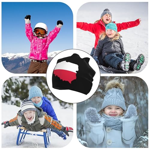 Poland Flag and map Children Hip Hop Knitted Hat Kids Elastic Leisure Knit Cap Warm Sleep Beanies Black 5