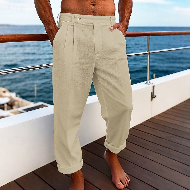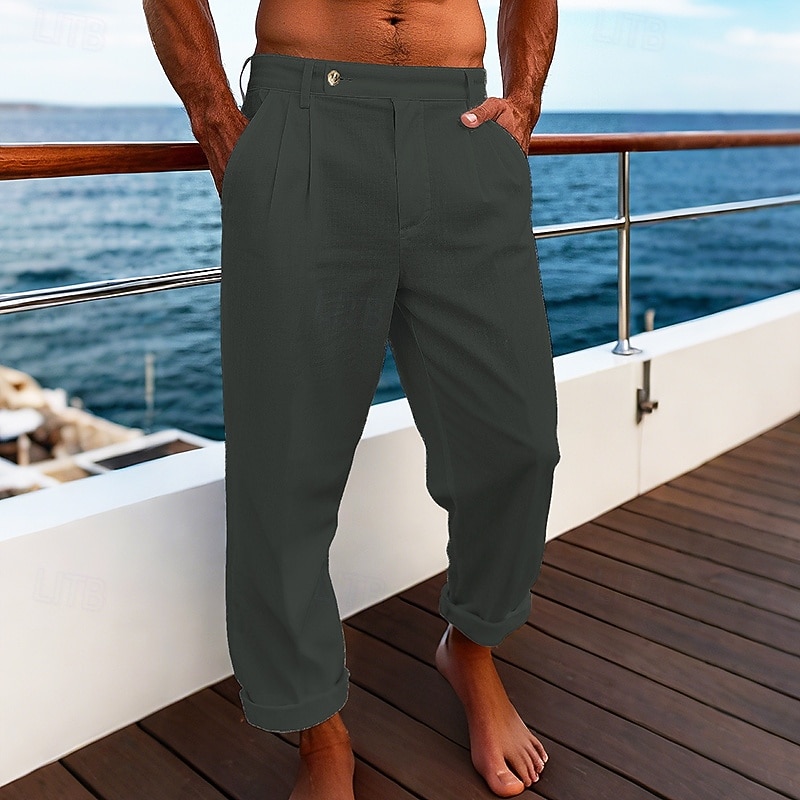 Why Choose Men's Linen Pants Trousers Summer Pants Beach Pants Pocket Plain Comfort Breathable Vacation Daily Holiday Hawaiian Boho turmeric Black?