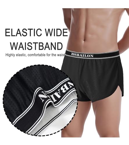 ZONBAILON Men's Sexy Large Split Side Boxer Shorts Fit Casual Running Boxers Mesh Breathable Underwears Athletic Trunks 3