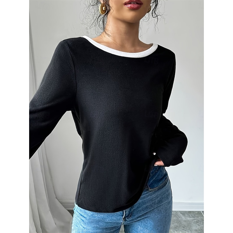 More information about Women's Blouse Solid Color Stylish Casual Long Sleeve Crew Neck Regular Tops Daily Holiday Going out Backless Black Spring Fall Winter