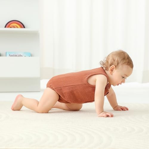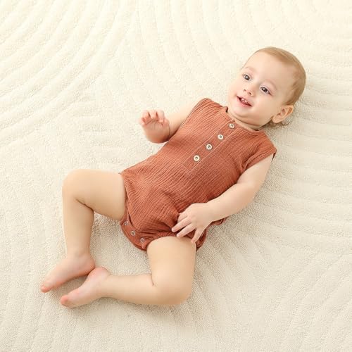 • 【Classic Design】: Sleeveless one-piece romper, Crew neck solid colored newborn baby bodysuit, cotton linen fabric makes your baby generous & adorable, will got a lot of compliments on this jumpsuit