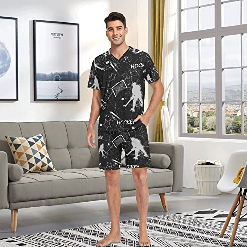 Oyihfvs 2 PC Men's Short Pajamas Set, V Neck Soft Causal Sleepwear Nightwear(S-2XL) 2