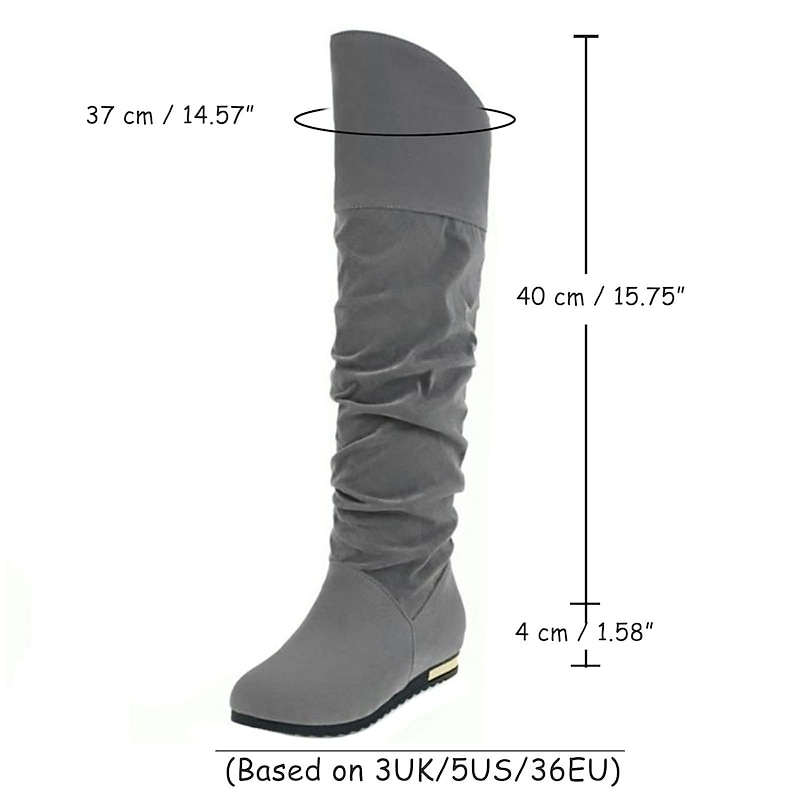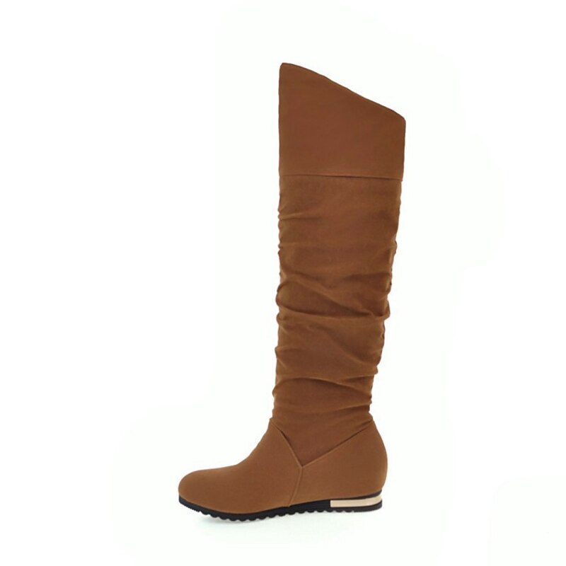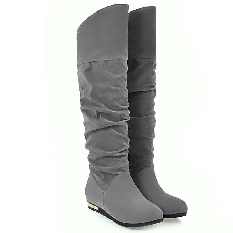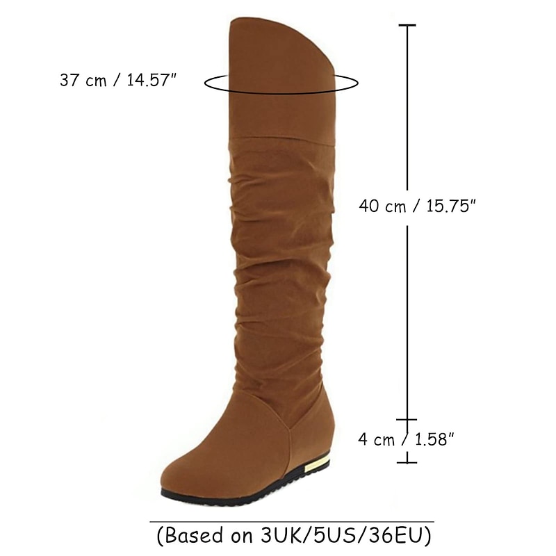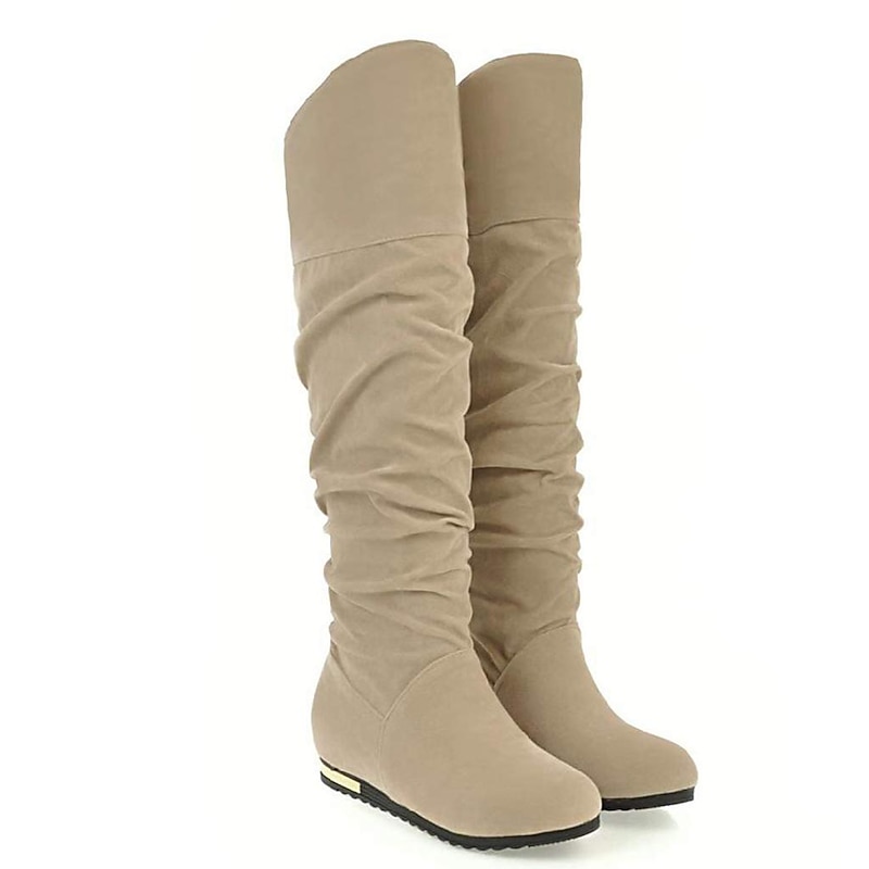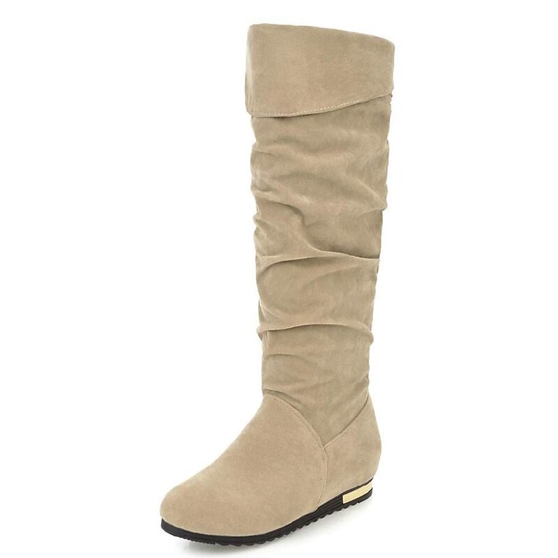 Highlights [Women's Slouchy Flat Knee-High Boots - Faux Suede Casual Boots in Multiple Colors for Fall and Winter Wear] [Fabric] Expertly crafted from faux leather, these boots offer a suede-like finish that exudes a sense of luxury and sophistication. The soft material ensures both comfort and style for all-day wear. [Fit] Designed with a chic slouch silhouette, these knee-high boots provide a relaxed yet stylish fit, making them a versatile addition to your fall and winter wardrobe. The flat heel and rounded toe enhance comfort without compromising on elegance. [Design Highlights] These boots feature a minimalist yet elegant design. The versatile range of colors — including brown, black, light grey, and khaki — ensures that you can effortlessly match them with a variety of outfits. The durable rubber outsole provides excellent traction, making these boots both fashionable and practical. [Occasions] Ideal for various settings such as parties, daily outings, outdoor activities, and office wear. Whether you're dressing up for a special occasion or keeping it casual, these boots are your go-to choice for adding a touch of flair to any ensemble. [Size Range] Available in sizes ranging from US5 / EU35 / UK3 / CN35 to US9.5-10 / EU41 / UK7.5-8 / CN43, these boots are designed to fit your usual size, providing the perfect blend of style and comfort for every wearer.