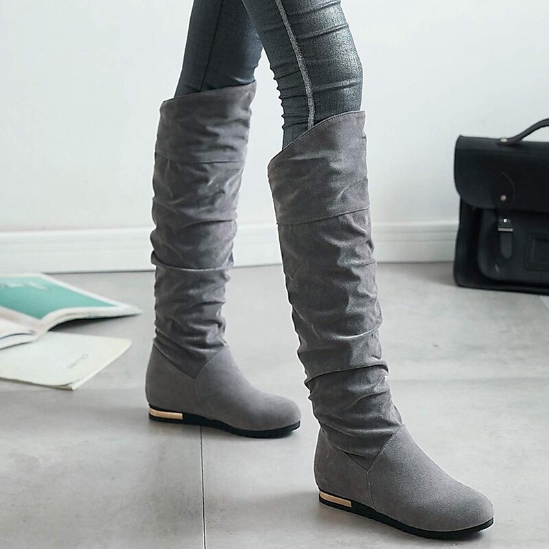 HOT ! Women's Slouchy Flat Knee-High Boots, Faux Suede Casual Boots in Multiple Colors for Fall and Winter Wear